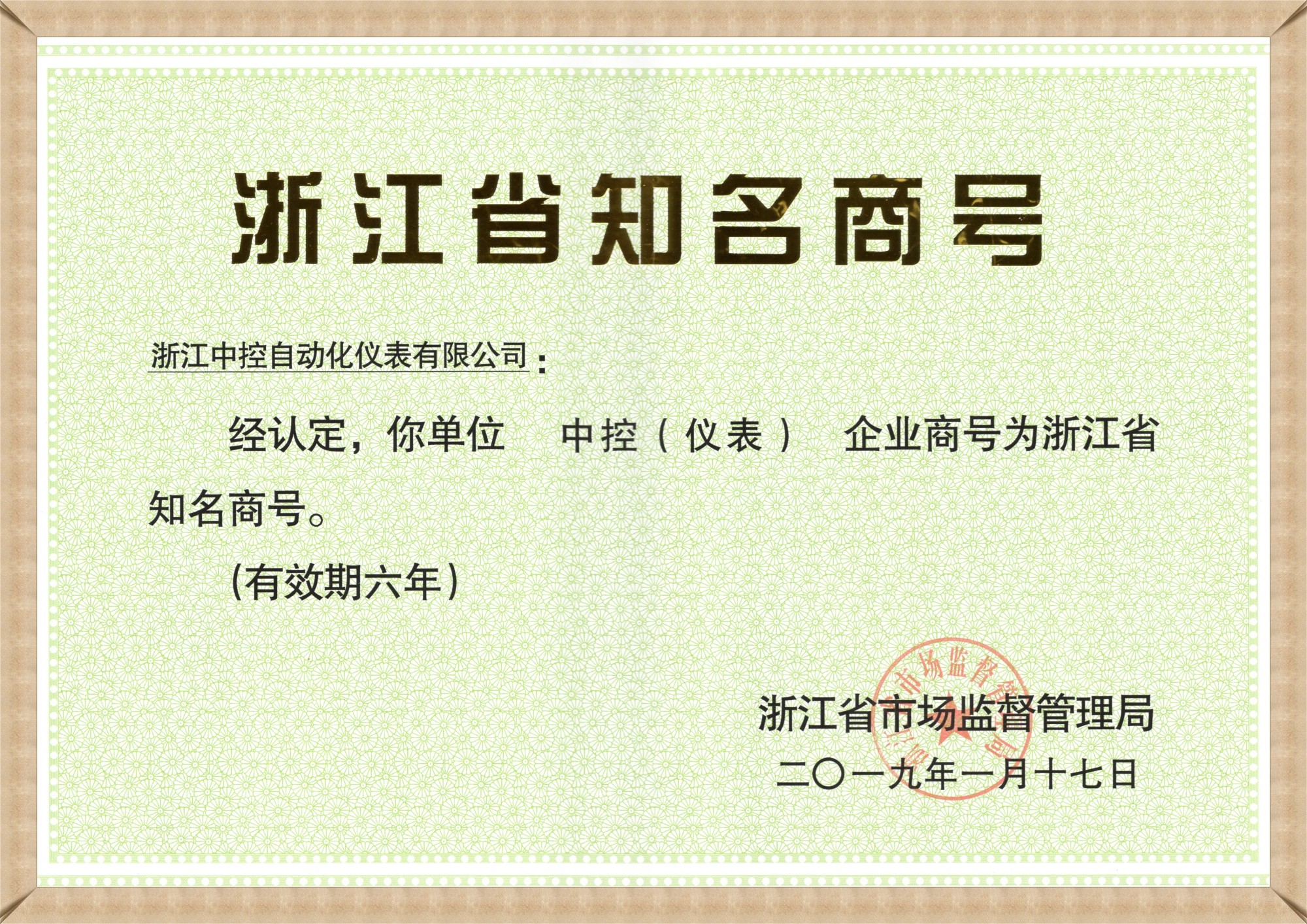中控儀表浙江省知名商號(hào)